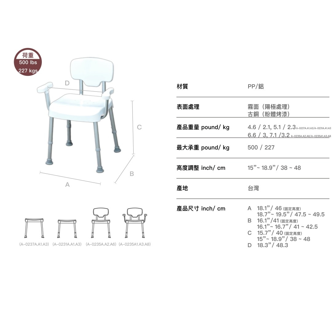 您好,此款為有扶手的洗澡椅, 其五金包螺絲長度亦是配合扶手結構, 若需要無扶手的同款洗澡椅, 建議可選購: 免工具靠背耐重椅 商品編號:A-0235A, 謝謝詢問。